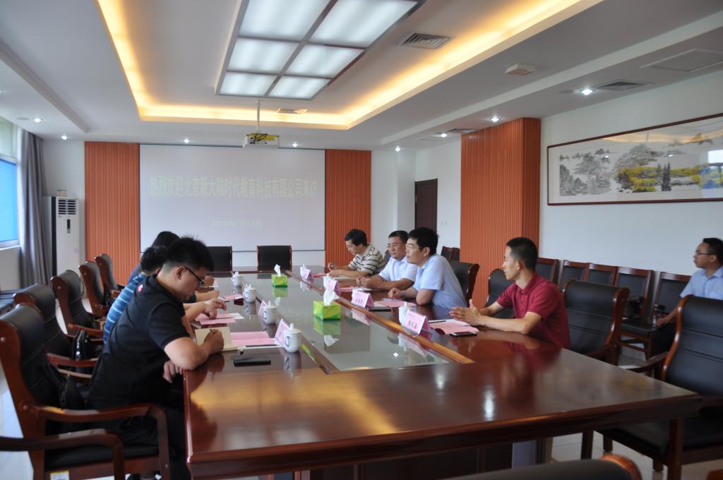 7月16日,北京新大陆时代教育有限公司副总经理邓立、山东区经理张存正一行4人来beplay(中国)交流洽谈校企合作事宜。院长王家爱,副院长刘德强,科技处(产学研合作中心)负责同志出席洽谈活动。