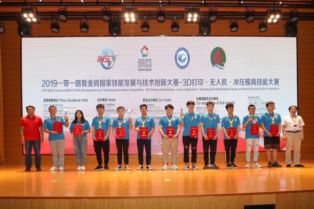 7月8日上午,2019一带一路暨金砖国家技能发展与技术创新大赛3D打印造型技术、冲压模具数字化设计与制造、无人机应用技能三赛项在beplay全站appbeplay全站app首页圆满落幕。一带一路暨金砖国家技能发展国际联盟副理事长刘辉,beplay全站appbeplay全站app首页院长王家爱,潍坊市教育投资集团常务副总经理许京波,金砖国家技能发展与技术创新大赛执委会副主席何勇,beplay全站appbeplay全站app首页副院长贺志强、谭明,以及赛项专家组长、裁判长和企业界领导等出席了闭幕式。闭幕式由beplay全站appbeplay全站app首页副院长李瑞昌主持。