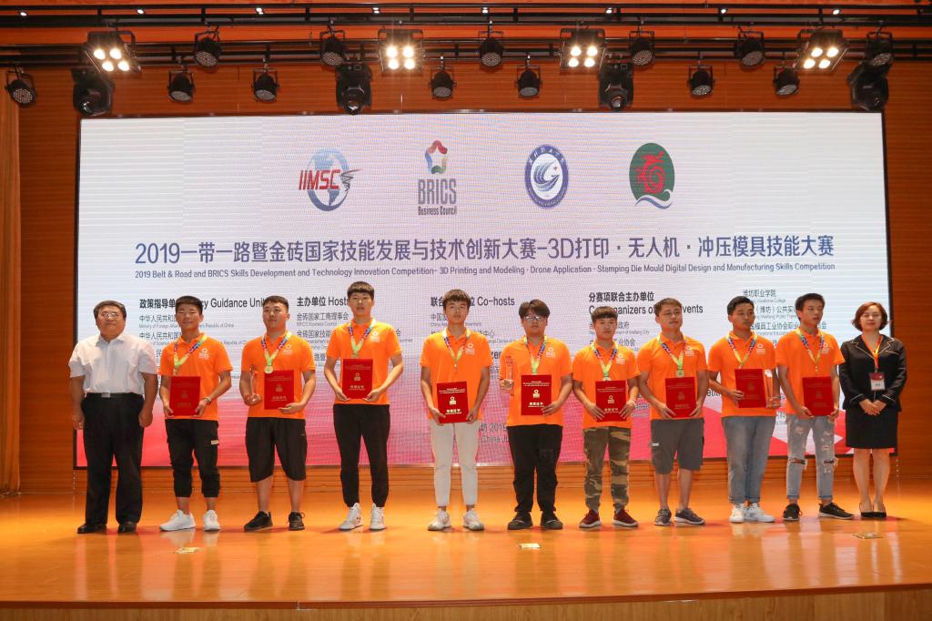 来自全国的108支代表队和6支国际代表队进行了为期两天紧张、激烈的技能比拼,最终决出冲压模具中国赛区决赛3支代表队获一等奖、6支代表队获二等奖、9支代表队获三等奖;3D打印中国赛区决赛3支代表队和beplay全站appbeplay全站app首页集训队哈萨克斯坦选手获一等奖、6支代表队和beplay全站appbeplay全站app首页集训队印度选手获二等奖、9支代表队和beplay全站appbeplay全站app首页集训队巴基斯坦选手获三等奖;无人机(高职组)中国赛区决赛3支代表队和beplay全站appbeplay全站app首页集训队孟加拉国选手获一等奖、6支代表队和beplay全站appbeplay全站app首页集训队塔吉克斯坦选手获二等奖、9支代表队和beplay全站appbeplay全站app首页集训队乌兹别克斯坦选手获三等奖;无人机(中职组)中国赛区决赛2支代表队获一等奖、4支代表队获二等奖、5支代表队获三等奖。此外,本届大赛还评出了大赛优秀组织奖、最佳组织奖、竞赛支持奖、优秀指导教师奖和beplay全站appbeplay全站app首页、山东(潍坊)公共实训基地、中国模具工业协会职业教育委员会、北京精雕科技集团有限公司、北京华奥复兴科技有限公司、深圳市创想三维科技有限公司获得突出贡献奖。