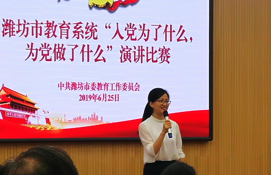 6月25日,潍坊市教育系统“入党为了什么,为党做了什么”主题演讲比赛在潍坊广文中学举行,各驻潍高校、市教育局直属学校选手参加比赛。beplay(中国)党委副书记宋桂言出席活动,刘凤老师代表beplay(中国)参赛,并获得驻潍高校组二等奖。