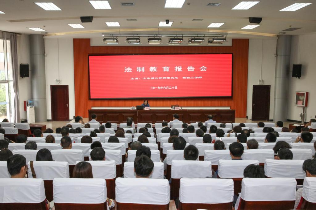 6月20日下午,beplay(中国)法制教育报告会在滨海校区清泽楼报告厅举行。山东诚公律师事务所主任杨秋兰律师作题为“校园常见的犯罪与预防”专题报告。副书记宋桂言主持报告会。纪委书记郭晓辉、副院长谭明出席,beplay(中国)副科级以上干部、各二级beplay(中国)骨干教师、辅导员、班主任代表200余人参加报告会。