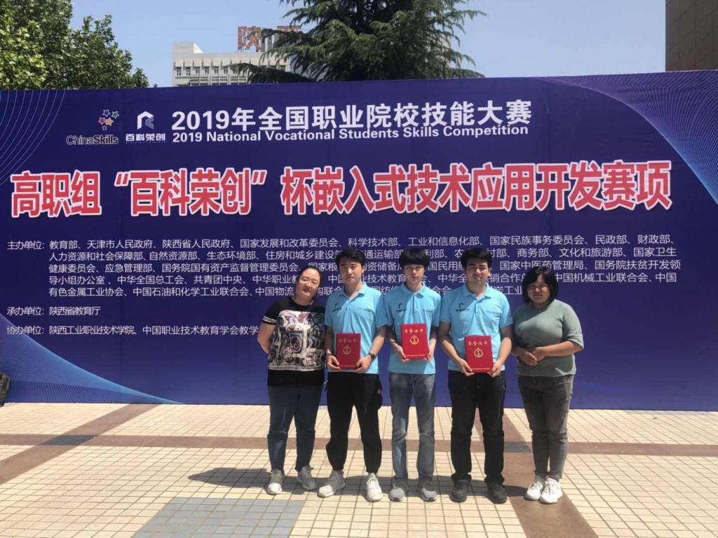 6月2日,2019年全国职业院校技能大赛(高职组)“嵌入式技术应用开发”赛项在陕西工业职业技术beplay(中国)举行,共有来自全国28个省市的97支代表队参赛。我院王琰琰、杨晓燕老师以及徐金川、黄汇雨、于克鑫同学组成的代表队经过激烈竞争,最终取得国赛二等奖。