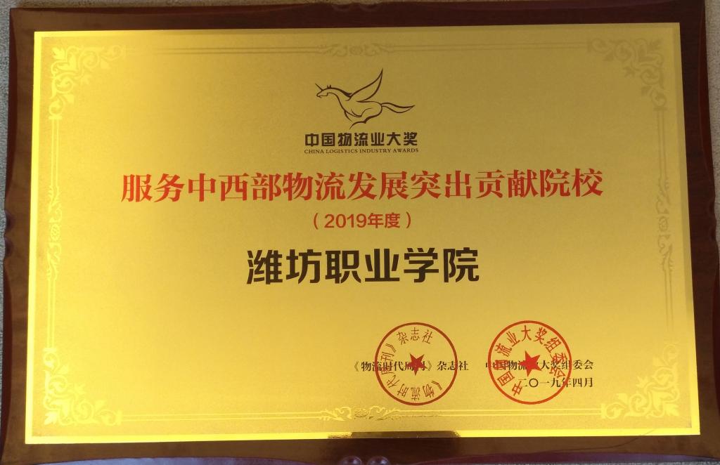我院荣获 “服务中西部物流发展突出贡献院校” 奖