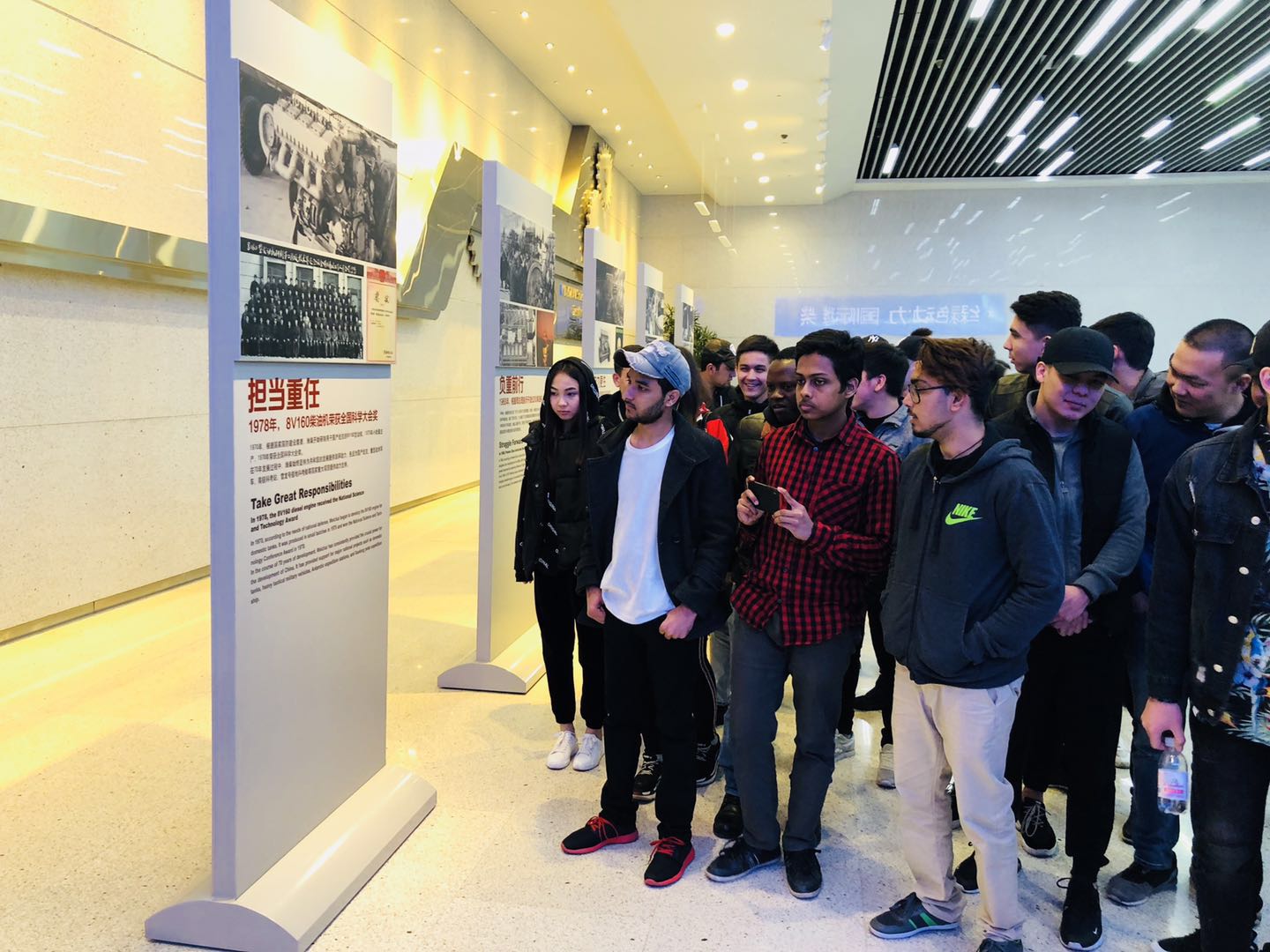 留学生首先参观雷沃重工股份有限公司,公司负责人从公司历史、企业文化、海外市场拓展和进出口业务等方面作了详细介绍。在生产车间,留学生了解了产品材料、生产流程、制造工艺等,就相关技术在学生生源国应用的可行性等相关问题进行交流互动。通过介绍,我院留学生对机械重工产生了浓厚的兴趣。接下来留学生们走进潍柴动力股份有限公司,在聆听展厅讲解员介绍的同时,感受潍柴动力的发展历程与发展格局;在参观车间的同时,留学生们被“潍柴动力发动机”“法士特变速器”“陕汽重卡”深深吸引,通过参观这两家公司,留学生们不禁对中国技术竖起大拇指。最后一站留学生们来到本次活动合作方山东智炎众益合供应链有限公司,参观公司办公区域,企业负责人在会议室向留学生就跨境电商、外贸培训和专业实习进行宣讲,并由实习代表向学生分享工作心得,现场气氛热烈,本次活动也伴着学生们激动的心情结束了。
