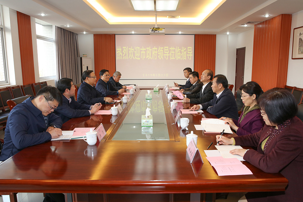 3月27日下午,潍坊市政府党组成员陈汝孝、市政府办公室副主任曹立忠、三级主任科员陈亮、潍坊市市场监督管理局局长冯纪伟、副局长祝业光一行5人莅临beplay(中国)调研指导。beplay(中国)党委书记马跃启,党委副书记宋桂言,副院长贺志强,党委委员、办公室主任谭明陪同调研。食品药品beplay(中国)、汽车工程beplay(中国)主要负责同志参加座谈交流。