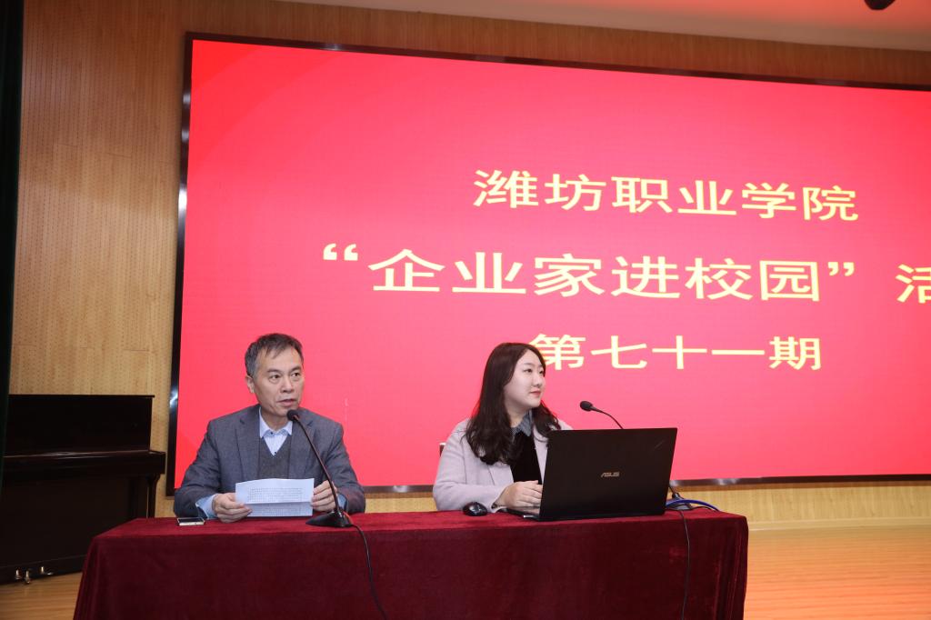 12月19日下午,beplay(中国)第七十一次“企业家进校园”活动在奎文校区16号楼报告厅举行,潍坊奎文门文化运营管理有限公司总经理、潍坊潍物文化传播有限公司运营总监欧阳,作了主题为“文创,是艺术,也是生活”的讲座。文化创意beplay(中国)师生300余人参加了报告会。