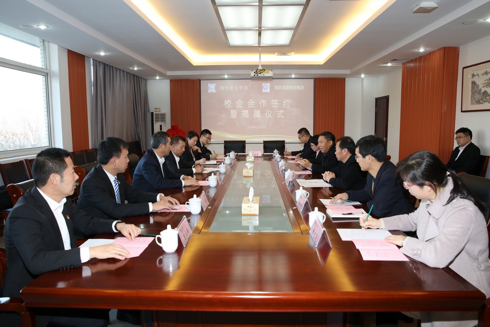张洪全和李树森一起为“beplay全站appbeplay全站app首页校外实习基地”揭牌。贺志强与臧传奎共同签署了《beplay全站appbeplay全站app首页与潍坊滨海旅游集团有限公司校企合作协议》。