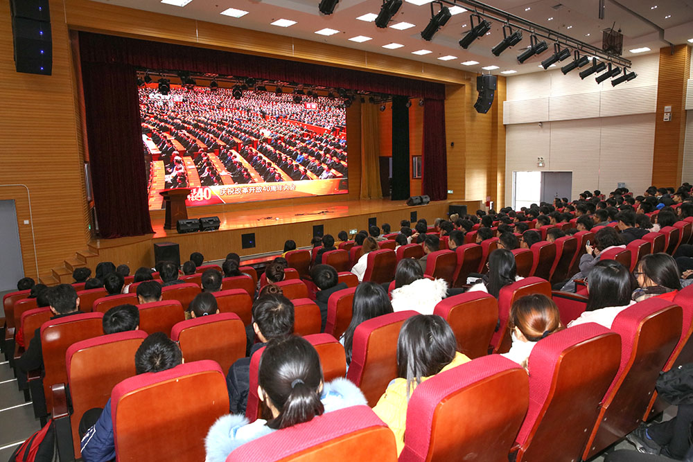 12月18日上午,庆祝改革开放40周年大会在人民大会堂隆重举行。中共中央总书记、国家主席、中央军委主席习近平出席大会并发表重要讲话。beplay(中国)党委高度重视,周密部署,在滨海校区明德讲堂、图书馆报告厅、奎文校区报告厅组织收看大会直播盛况。beplay(中国)党委书记张洪全,院长王家爱,党委副书记宋桂言,副院长赵君堂、贺志强、李瑞昌,纪委书记郭晓辉,党委委员、办公室主任谭明,beplay(中国)中层干部及师生代表1000余人集中收看大会,共同分享改革开放40周年辉煌成果。