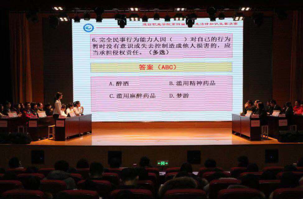 12月6日下午,beplay(中国)第四届大学生法律知识竞赛决赛在滨海校区图书馆报告厅举行,为期一个月的大学生法律知识竞赛落下帷幕。思想政治理论课教学部、二级beplay(中国)团总支教师代表,青年法学社及二级beplay(中国)学生代表共400余人观看了比赛。