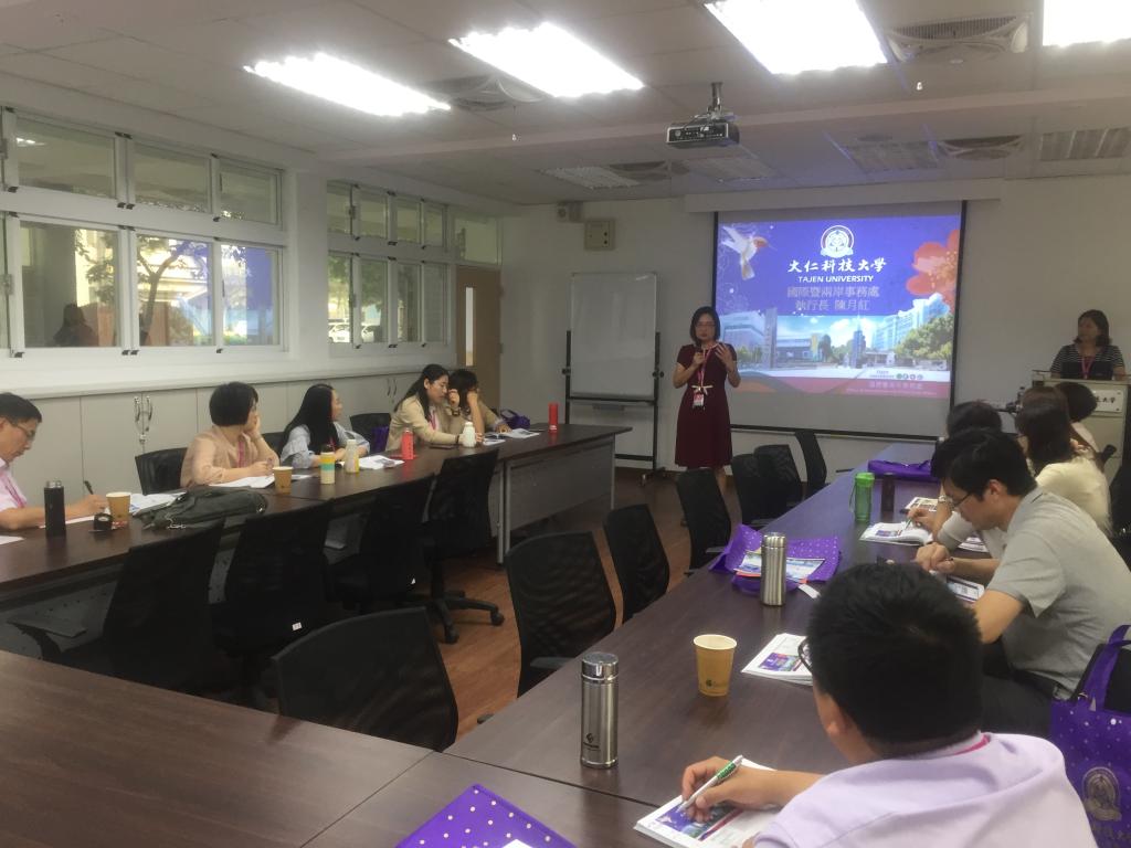 大仁科技大学是我院多年的友好合作学校,是台湾科学技术类大学的典型代表。本次研修中,大仁科技大学给予了热情接待和周到安排,举行了欢迎仪式和交流座谈会。大仁科技大学副校长郭代璜致欢迎词,双方代表分别介绍了学校基本情况、办学特色、专业设置、师资情况以及所取得的丰硕成果。