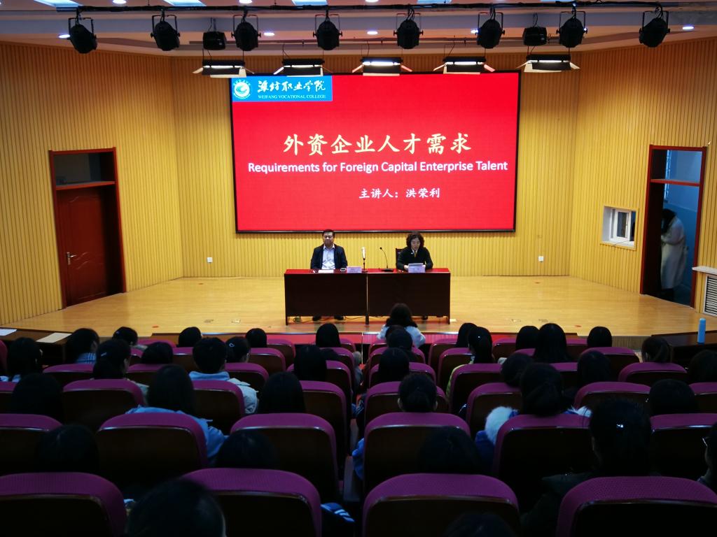 11月22日下午,新加坡商会山东分会会长、潍坊乔新集团董事长洪荣利先生在我院创新创业楼报告厅为我院师生作了题为“外资企业人才需求”的讲座,国际商务beplay(中国)和国际教育beplay(中国)100余名师生参加了报告会。