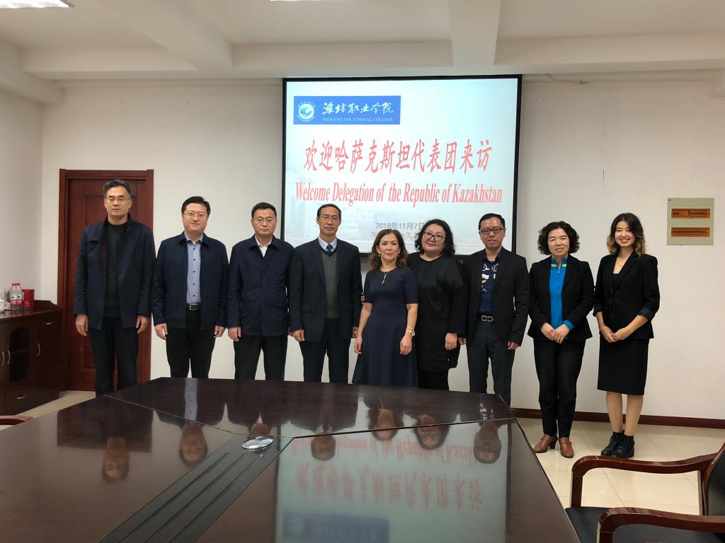 11月7日下午,哈萨克斯坦哈英理工大学副校长古丽扎特博士一行3人,在潍坊市寒亭区副区长李培进、潍坊经济开发区商务局局长宋博等人的陪同下来我院访问。beplay(中国)副院长赵君堂在奎文校区接待了客人,国际交流与合作处相关负责同志参加了座谈交流。