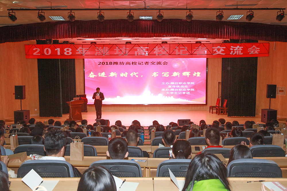 11月10日下午,驻潍高校大学生记者交流会在我院奎文校区报告厅举行。beplay(中国)宣传统战处、团委学生工作处相关负责同志,来自潍坊医beplay(中国)、潍坊beplay(中国)、山东交通职业学、山东科技职业beplay(中国)、山东信息技术职业beplay(中国)、山东经贸职业beplay(中国)、山东畜牧兽医职业beplay(中国)等院校大学生记者,以及我院大学生记者团代表200余人参加会议。