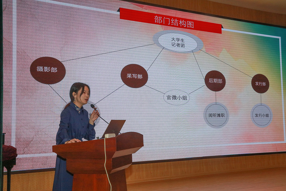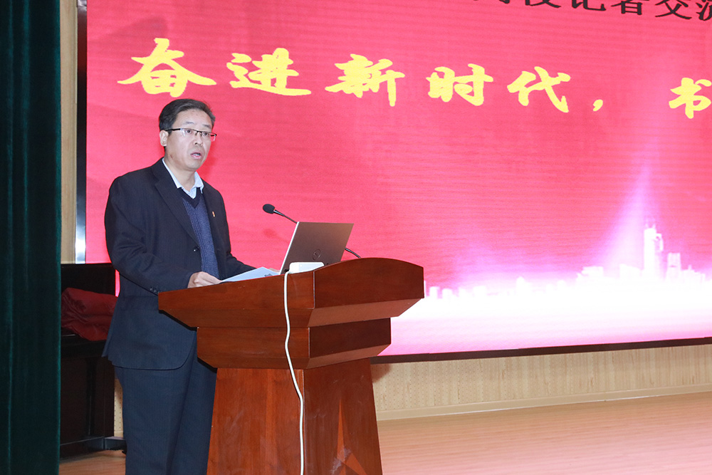 宣传统战处负责同志致辞,代表beplay全站appbeplay全站app首页宣传统战处和广大师生对驻潍大学生记者朋友的光临表示热烈的欢迎,介绍了几年来我院取得的显著办学成就和大学生记者团在院报、官微方面采写报道取得的成绩。希望驻潍高校大学生记者坚持党性原则,强化政治意识,各高校加强交流,各抒己见,汇智聚力,协同发展,接好“天气”,接好“地气”,写出有高度、深度、精度、温度的新闻报道,更加自觉唱好高校育人好声音。