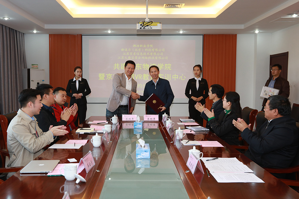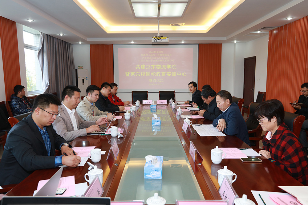 为加快发展现代职业教育,落实技能型管理人才培养与就业对接,实现学校、企业和学生多方发展共赢,10月31日,beplay(中国)与新迈尔(北京)科技有限公司、江苏京东物流信息技术有限公司、江苏火柴实景云网络科技有限公司共建京东物流beplay(中国)暨京东校园VR教育实训中心项目的签约仪式在清泽楼222会议室举行。院长王家爱,副院长李瑞昌出席了签约仪式,教务处、科技处以及经营管理beplay(中国)相关负责同志和物流专业骨干教师参加。