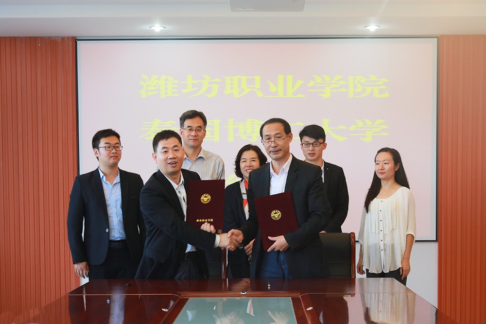 赵君堂介绍了beplay(中国)的办学规模、专业设置、人才培养、国际交流、留学生教育情况以及所取得的丰硕成果等,并陪同客人观看了beplay(中国)宣传片。李黎光介绍了泰国博仁大学的基本情况、办学特色、中国-东盟beplay(中国)的发展历史和现状,以及博仁大学中国-东盟beplay(中国)在专升本、升硕相关项目中所设立的中、英、泰语言授课的专业等情况。双方就学生学历提升、留学生招生等相关问题进行了深入交流和探讨,就校际互访、学生交流、教师研修等达成合作意向,并签署了合作备忘录。签约仪式结束后,李黎光一行在赵君堂副院长陪同下参观了滨海校区图书馆。