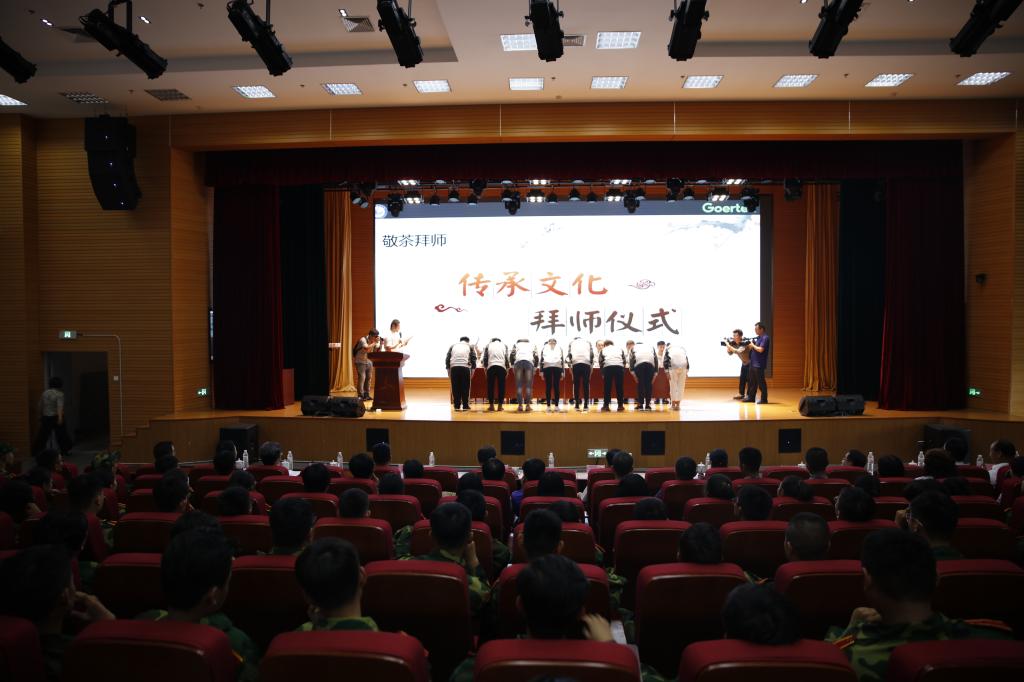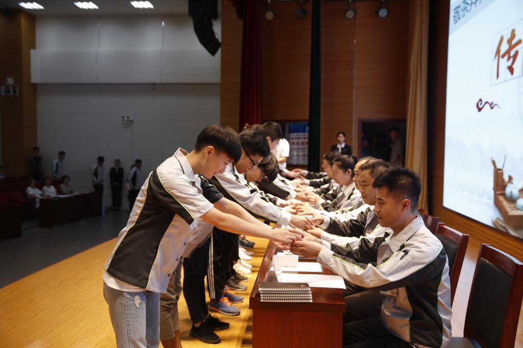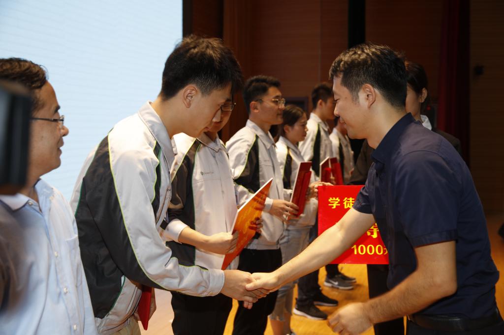 仪式上,学生工作处、歌尔PMF事业群人力资源部负责人为8名师傅颁发了聘书签订师徒协议,30余名学徒向师傅们行拜师礼,并为2016级学徒制优秀学员代表发放学徒制奖学金。