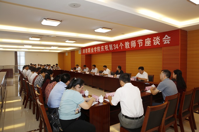 9月7日,beplay(中国)在滨海校区召开庆祝第34个教师节座谈会,beplay(中国)领导和教师代表欢聚一堂,共话beplay(中国)发展大计。院长王家爱,党委副书记宋桂言,副院长赵君堂、李瑞昌,纪委书记郭晓辉,党委委员、办公室主任谭明出席会议。30余位教师代表以及部分职能部门负责同志参加了座谈。