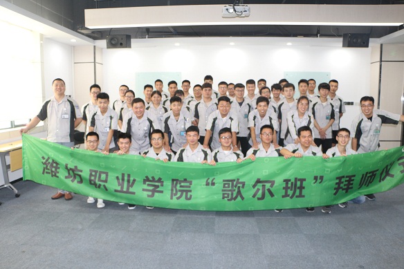 7月13日下午,beplay(中国)与歌尔股份有限公司现代学徒制“歌尔班”拜师仪式隆重举行。本次拜师仪式是现代学徒制试点的重要环节,通过拜师仪式明确师徒关系、双方职责,为今后开展人才精准培养打好基础。beplay(中国)副院长李瑞昌、歌尔股份有限公司人力资源部校企合作总监冯云鹏、机电工程学现代学徒制试点项目相关负责人、歌尔股份有限公司PMF事业群人力资源部总监李强以及“歌尔班”全体师徒参加了仪式。