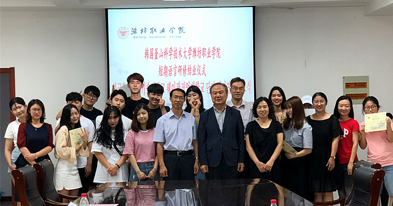 7月6日至15日,韩国釜山科技大学学生团来我院进行为期10天的语言学习及文化体验活动顺利完成。7月14日结业仪式在奎文校区11号楼第二会议室举行,beplay(中国)副院长赵君堂、国际交流与合作处相关负责同志及教师代表,以及来自釜山科技大学中文系的17名师生参加了结业仪式,赵君堂对本次活动进行了总结,并为交流团学生颁发了证书。