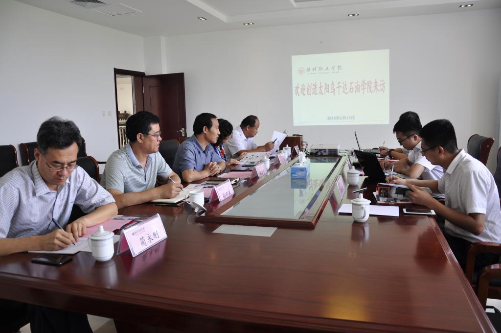座谈会上,赵君堂代表beplay(中国)对客人的来访表示欢迎,向客人介绍了beplay(中国)的校史概况、专业设置、技能大赛、国际交流、留学生教育及援非项目培训等方面的情况。段晓飞介绍了创造太阳乌干达石油beplay(中国)的建设背景、发展历程及适应乌干达国家需求确定的发展规划。会谈中,双方结合我院的优势专业及乌干达农业发展需要,就农业及机电类专业教育资源输出及技术技能培训进行了深入交流,并达成初步合作意向。双方表示将进一步制定相关计划进行深入对接,将合作项目落到实处。