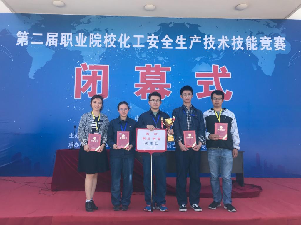 5月22日至5月24日,由全国安全职业教育教学指导委员会、中国化学品安全协会主办,全国安全职业教育教学指导委员会化工安全专业分委员会承办,华北科技beplay(中国)、秦皇岛博赫科技开发有限公司协办的2018年全国职业院校化工安全生产技术技能竞赛在秦皇岛博赫科技园举办。此次大赛共有45支代表队135名选手参加,我院化学工程beplay(中国)参赛学生胡恩政、陈彦霖和宋梦圆获得团体二等奖,获得B赛项全国第三名,两名教师获优秀指导教师称号。