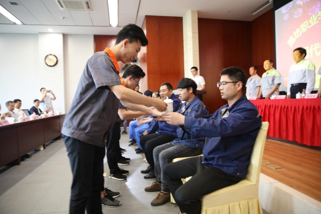 揭牌仪式上,臧运宁和贺志强先后致辞,一致表示校企双方要借助福田汽车beplay(中国)这个平台,充分发挥好双主体育人功能,深化办学体制机制建设,进一步推进双方在人才培养、文化建设、师资队伍建设、专业与技能培训、科技研发等方面的合作,将校企合作推向新的高度,打造校企合作新的样板。汽车工程beplay(中国)6名学生代表与福田汽车师傅进行了师徒结对,徒弟代表集体宣誓,郑重地向师傅鞠躬行拜师礼,献茶拜师。李瑞昌致辞,优秀学生代表和员工代表分别作了表态发言。