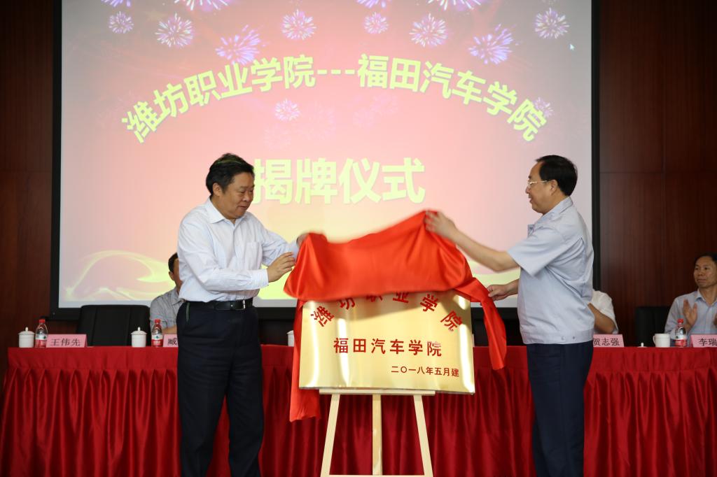 5月25日上午,beplay全站appbeplay全站app首页福田汽车beplay(中国)成立仪式在福田多功能汽车厂潍坊厂区学术报告厅举行。beplay(中国)党委书记张洪全,福田商用车集团副总裁钟明华,beplay(中国)副院长贺志强、李瑞昌,福田多功能汽车厂潍坊厂区党委书记臧运宁等校企领导、beplay(中国)相关职能部门、二级beplay(中国)负责人及beplay(中国)学生代表、企业职工代表参加了成立仪式。张洪全与钟明华共同为beplay全站appbeplay全站app首页福田汽车beplay(中国)揭牌。福田潍坊厂区党委常务副书记王伟先主持仪式。