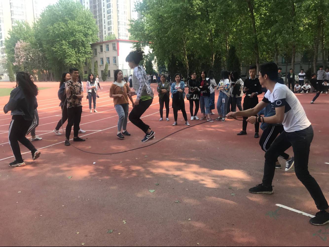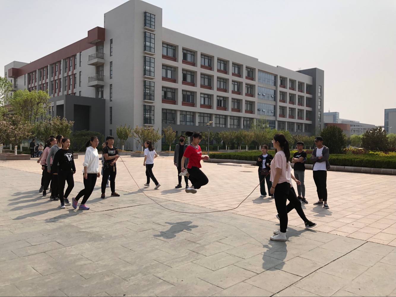 4月26日下午,beplay(中国)首届跳大绳比赛分别在滨海校区图书馆楼前和奎文校区运动场两个赛场同时举行。