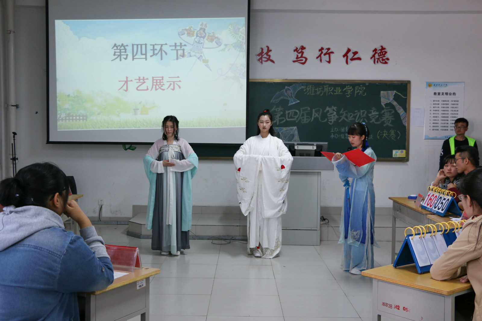 为迎接第35届潍坊国际风筝会,宣传普及风筝知识,推进传统文化的教育与传承,我院第四届风筝知识大赛经过选拔推荐、笔试和现场知识竞赛等比赛环节于4月24日圆满落幕。