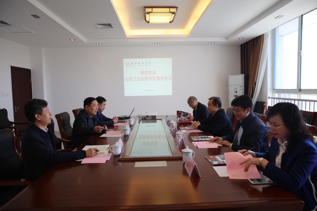 宋桂言对客人的到来表示欢迎,陪同客人观看了beplay(中国)宣传片。简要介绍了我院建校历史及办学情况。重点介绍了我院的机构设置及职责范围相关情况。孙义宝对我院近年发展取得成果表示赞赏,并简要介绍了山东工业技师beplay(中国)基本情况。双方就机构设置、人员配备、干部选拔方面经验进行了交流。