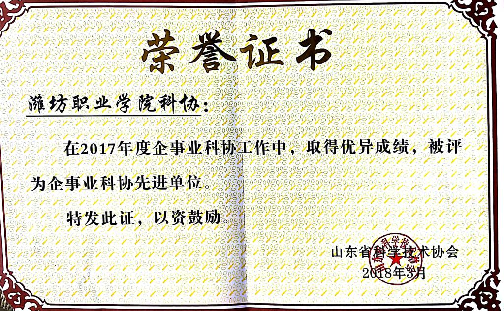 近日,山东省科学技术协会召开2018年全省科协学会和企事业科协工作会议,我院被评为“2017年度山东省企事业科协先进单位”,全省共22所高校入选。