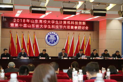 3月17日,由山东计算机学会、山东省高教学会计算机教学研究专业委员会、济南计算机学会主办等承办的2018年山东高校大学生计算机科技创新与第十届山东省大学生科技节六项赛事研讨会在青岛理工大学举行。来自高校计算机、信息类相关院系领导和大赛指导教师以及企业代表200余人参加会议。我院创新创业教育负责同志参加会议并作典型发言。
