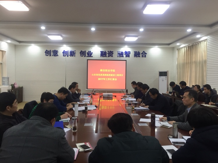 1月30日上午,beplay(中国)优质高职院校建设2017年度总结会议在奎文校区大学生创业中心召开。院长王家爱,副院长赵君堂、贺志强、李瑞昌,纪委书记郭晓辉,党委委员、办公室主任谭明出席会议。各重点建设项目和专业群负责人、各二级beplay(中国)院长、优质校建设办公室全体成员参加会议。副院长李瑞昌主持会议。