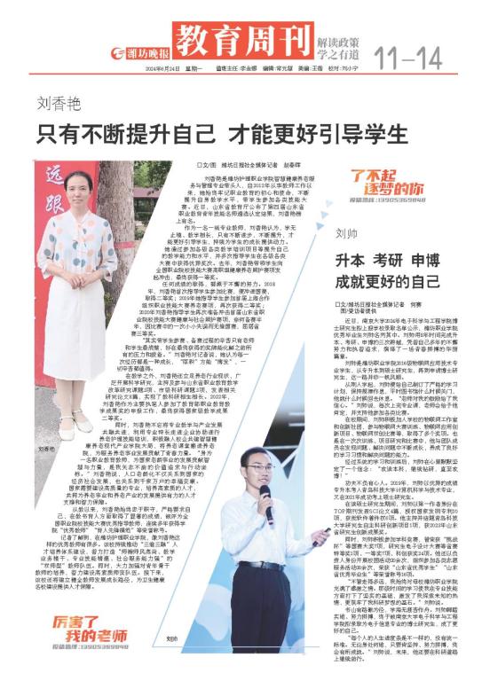 同时,刘帅积极参加学科竞赛,曾荣获“挑战杯”等国赛大奖7项,研究生电子设计大赛等省赛特等奖1项、一等奖7项、科创获奖24项。他还以负责人身份开展校园活动20
