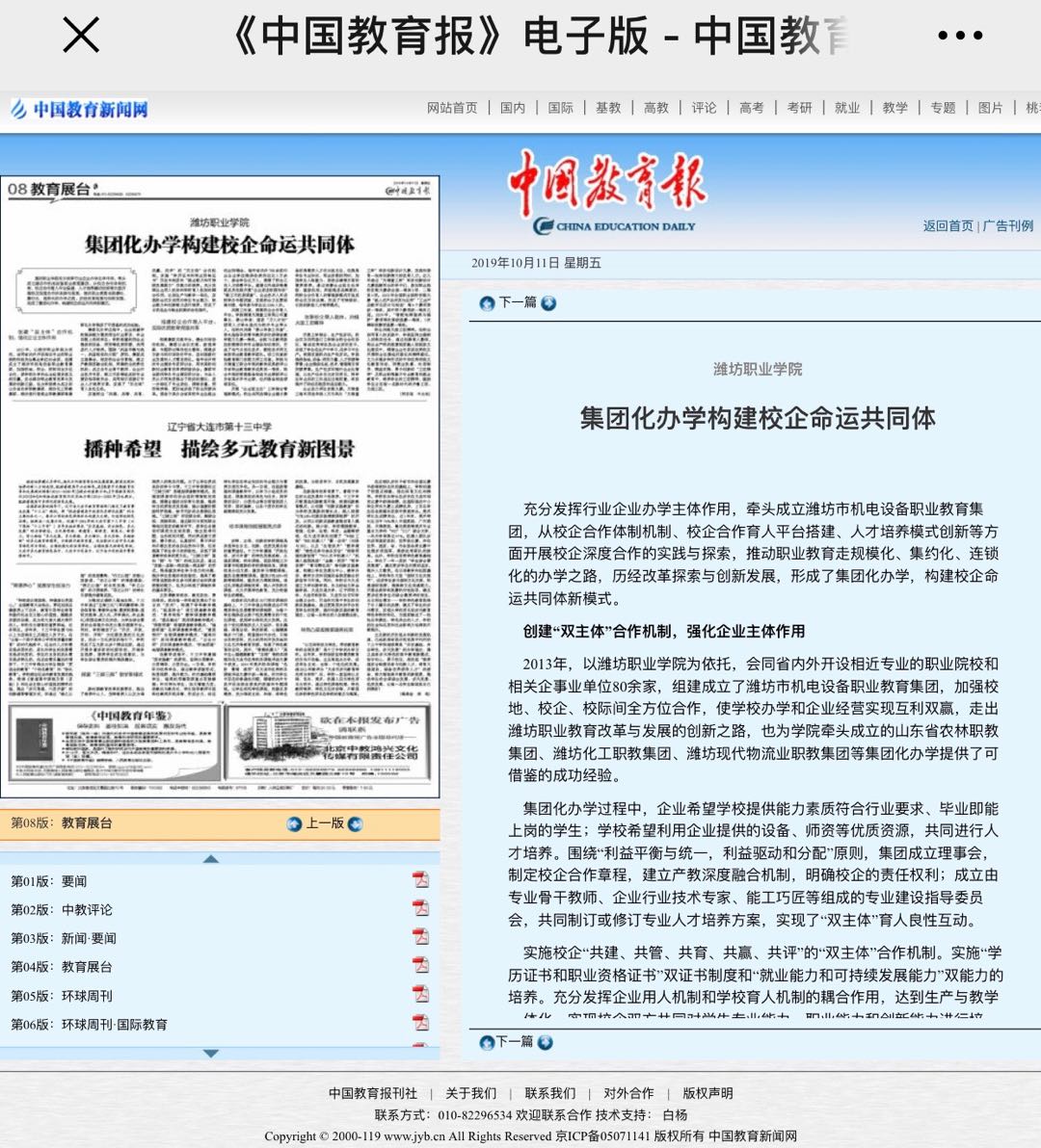 [中国教育报]beplay全站appbeplay全站app首页集团化办学构建校企命运共同体