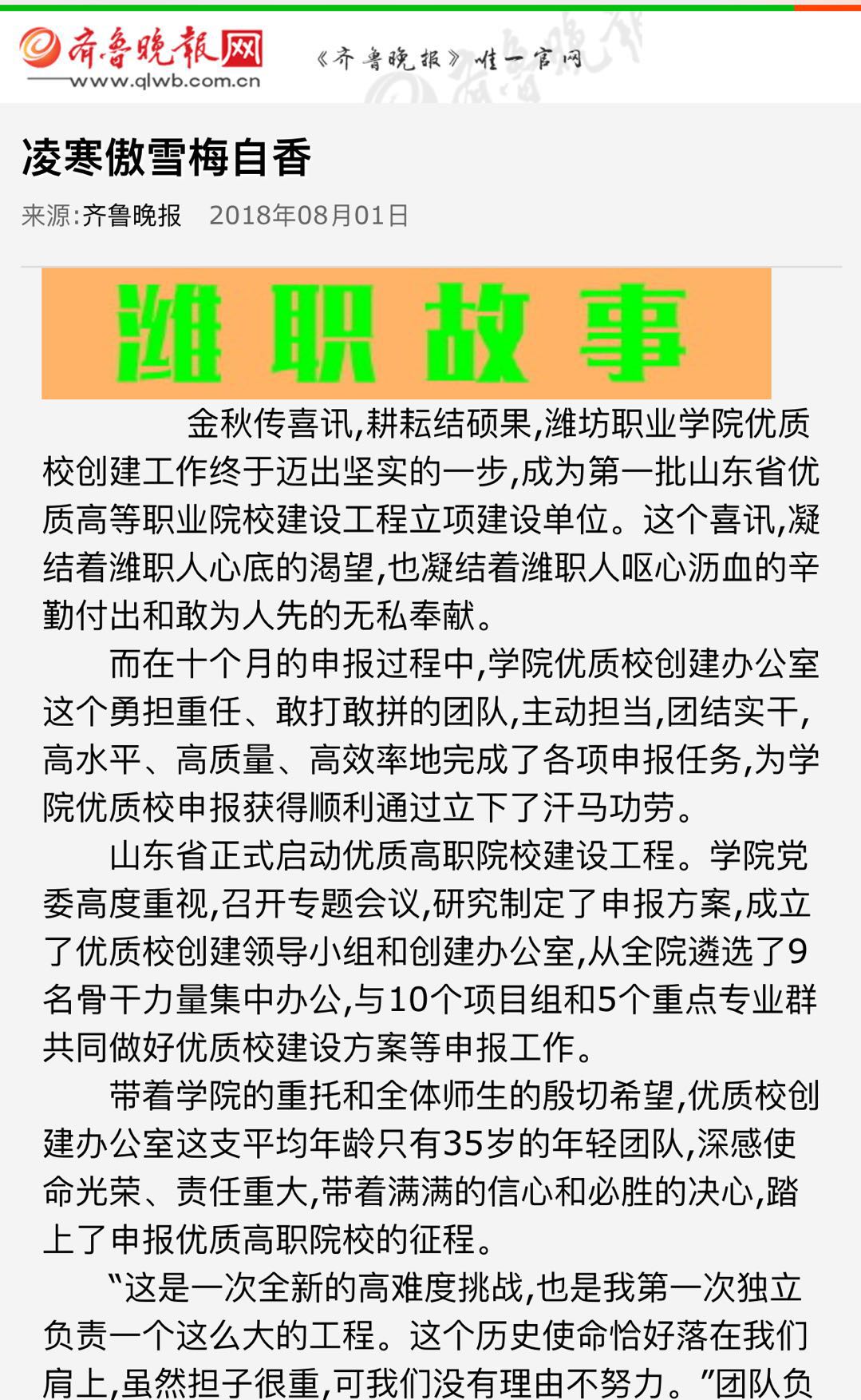 [齐鲁晚报]凌寒傲雪梅自香——记beplay全站appbeplay全站app首页优质校创建办公室先进事迹
