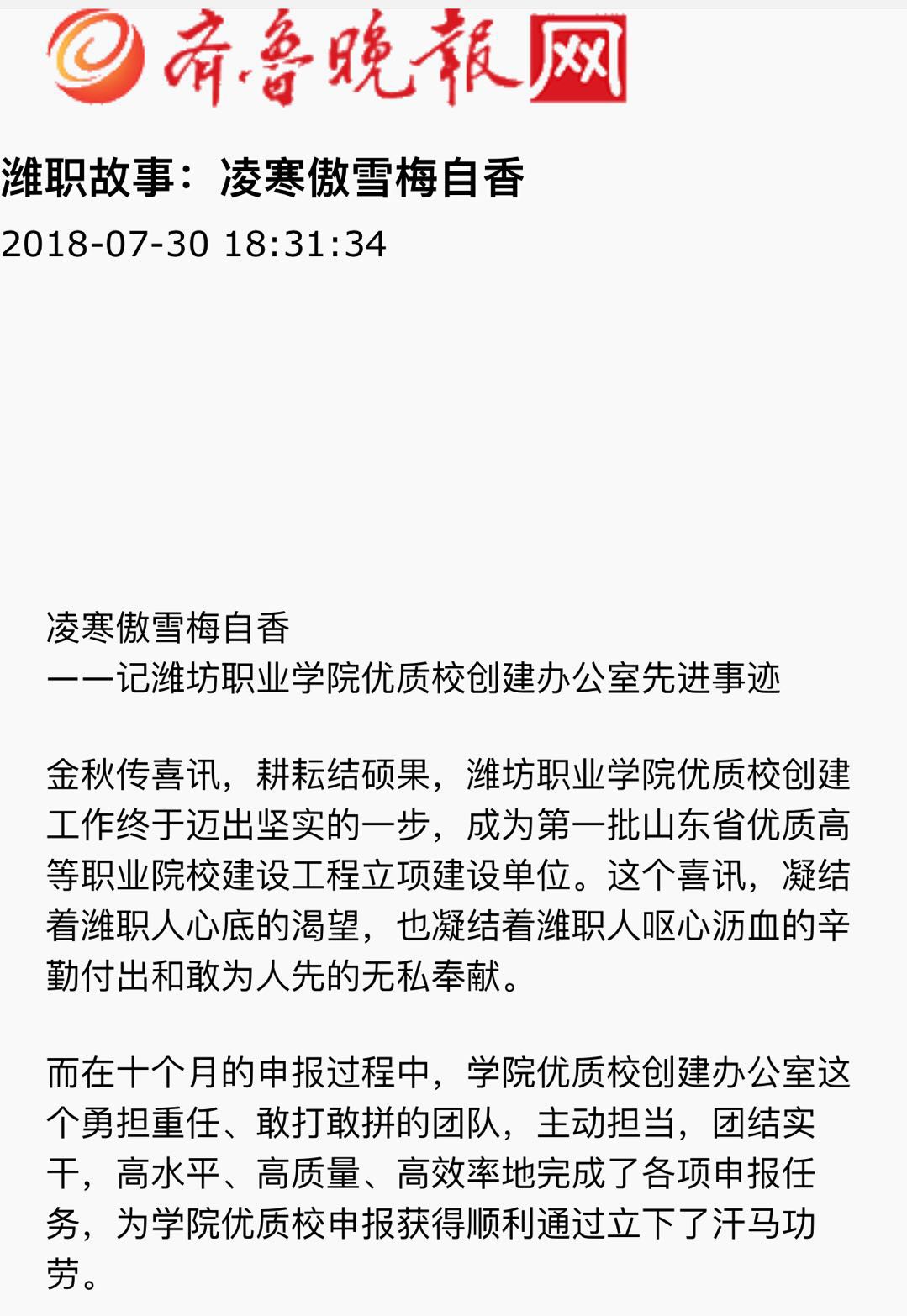 [齐鲁晚报]凌寒傲雪梅自香——记beplay全站appbeplay全站app首页优质校创建办公室先进事迹