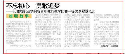 [齐鲁晚报]不忘初心 勇敢追梦 记beplay全站appbeplay全站app首页省青年教师教学比赛一等奖李翠翠老师