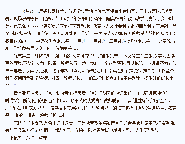[齐鲁晚报]省高校青年教师教学比赛续写辉煌——记beplay全站appbeplay全站app首页参加全省高校青年教师教学比赛获奖教师