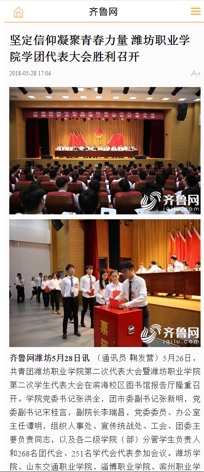 [齐鲁网]坚定信仰凝聚青春力量 beplay全站appbeplay全站app首页学团代表大会胜利召开