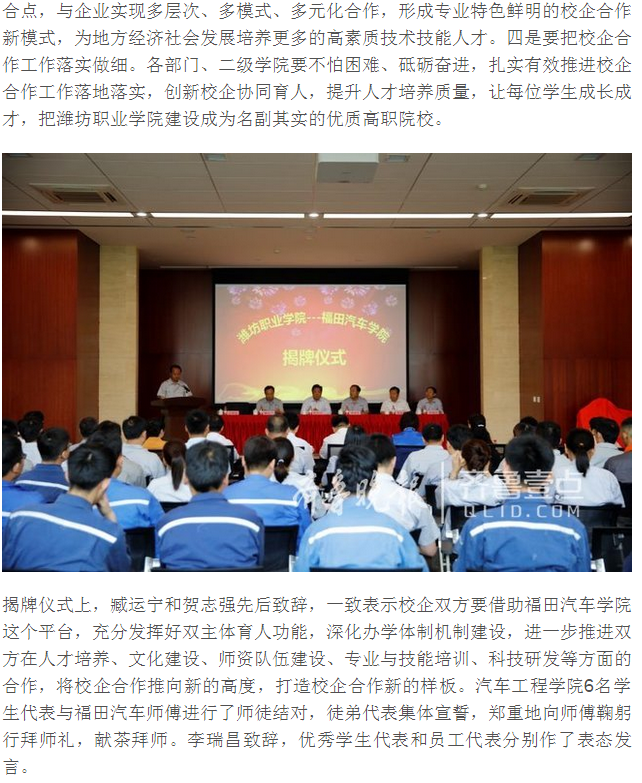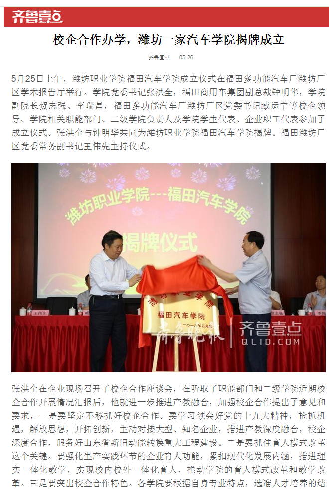 [齐鲁壹点]校企合作办学 潍坊一家汽车beplay(中国)揭牌成立
