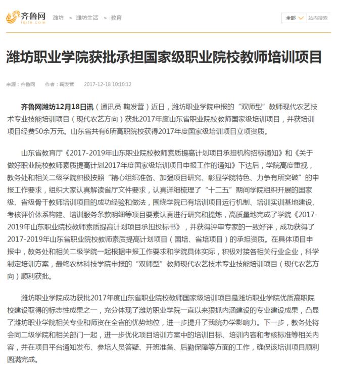 [齐鲁网]beplay全站appbeplay全站app首页获批承担国家级职业院校教师培训项目