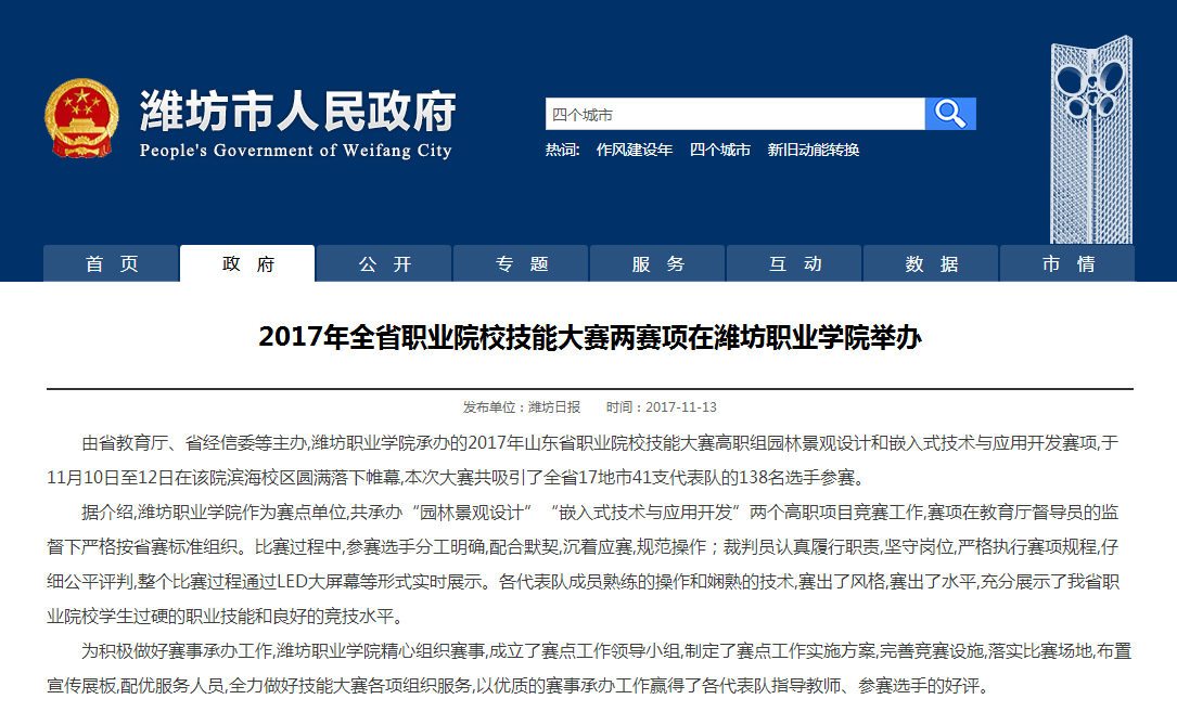 潍坊市人民政府网站: 2017年全省职业院校技能大赛两赛项在beplay全站appbeplay全站app首页举办