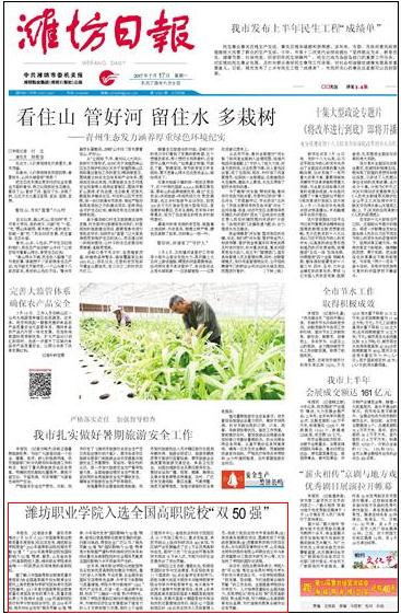 [潍坊日报]beplay全站appbeplay全站app首页入选全国高职院校“双50强”
