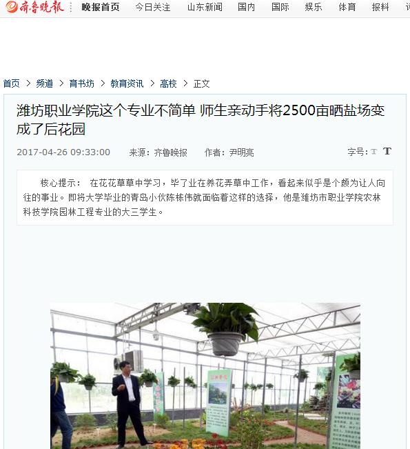 潍坊4月26日讯在花花草草中学习,毕了业在养花弄草中工作,看起来似乎是个颇为让人向往的事业。即将大学毕业的青岛小伙陈栋伟就面临着这样的选择,他是潍坊市职业beplay(中国)农林科技beplay(中国)园林工程专业的大三学生。在这个位于渤海之滨的职业beplay(中国),陈栋伟就读的这个农林科技beplay(中国)可不简单。
