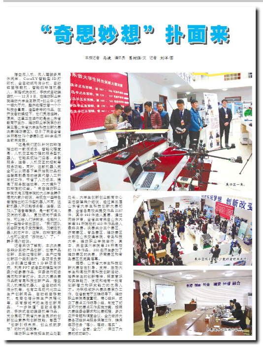 猎空无人机、无人驾驶多用休闲车、CoreXY智能型3D打印机、全自动纸币清分机、自动钵苗移栽机、智能咖啡馆机器人、脚踏式洗衣机、手扶式自动装袋机……12月3日,在beplay全站appbeplay全站app首页潍坊大学生互联网+创业中心的一楼大厅内,整齐地摆放着一个个科技含量高、造型奇特的作品,在开发者的操控下,它们灵活运转。原来,这里正在进行的是由山东省教育厅主办、beplay全站appbeplay全站app首页承办的第三届山东省大学生科技创新大赛决赛(潍坊赛区),吸引了来自全省28所高校73个参赛队伍300余名师生前来竞技。