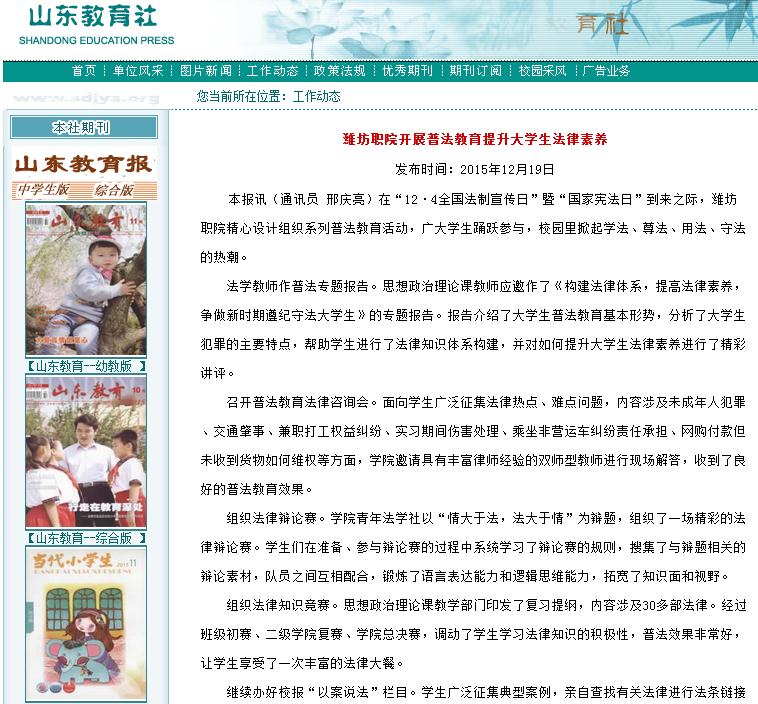 [山东教育报]潍坊职院开展普法教育提升大学生法律素养