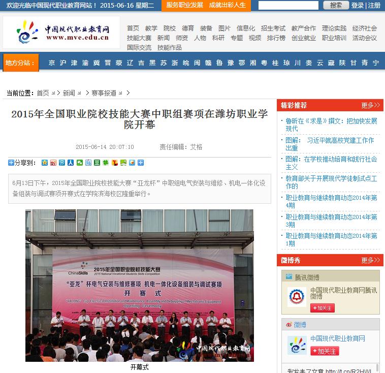 [中国现代职业教育网]2015年全国职业院校技能大赛中职组赛项在beplay全站appbeplay全站app首页开幕
