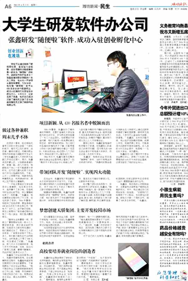 [潍坊晚报]大学生研发软件办公司
